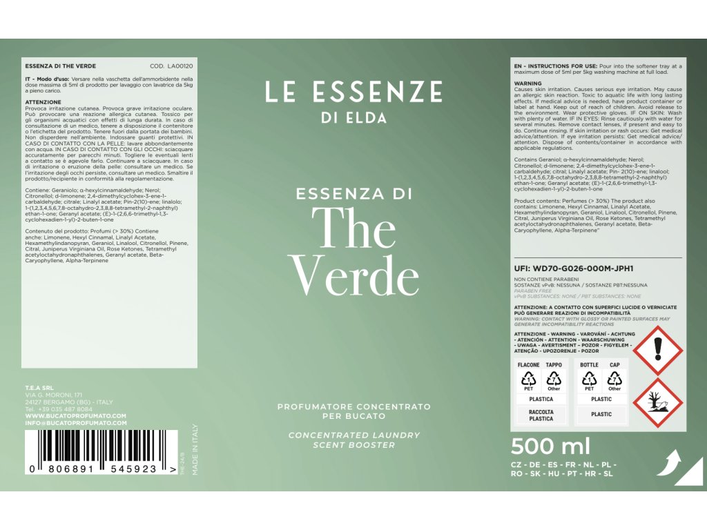 Parfem za rublje THE VERDE 500ml svježi citrusni miris sa zelenim čajem.